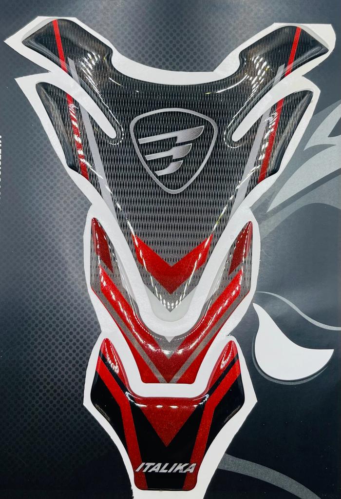 CALCOMANÍA PROTECTORA DE TANQUE EN COLOR ROJO/NEGRO/GRIS CON DISEÑO DE PUNTOS.