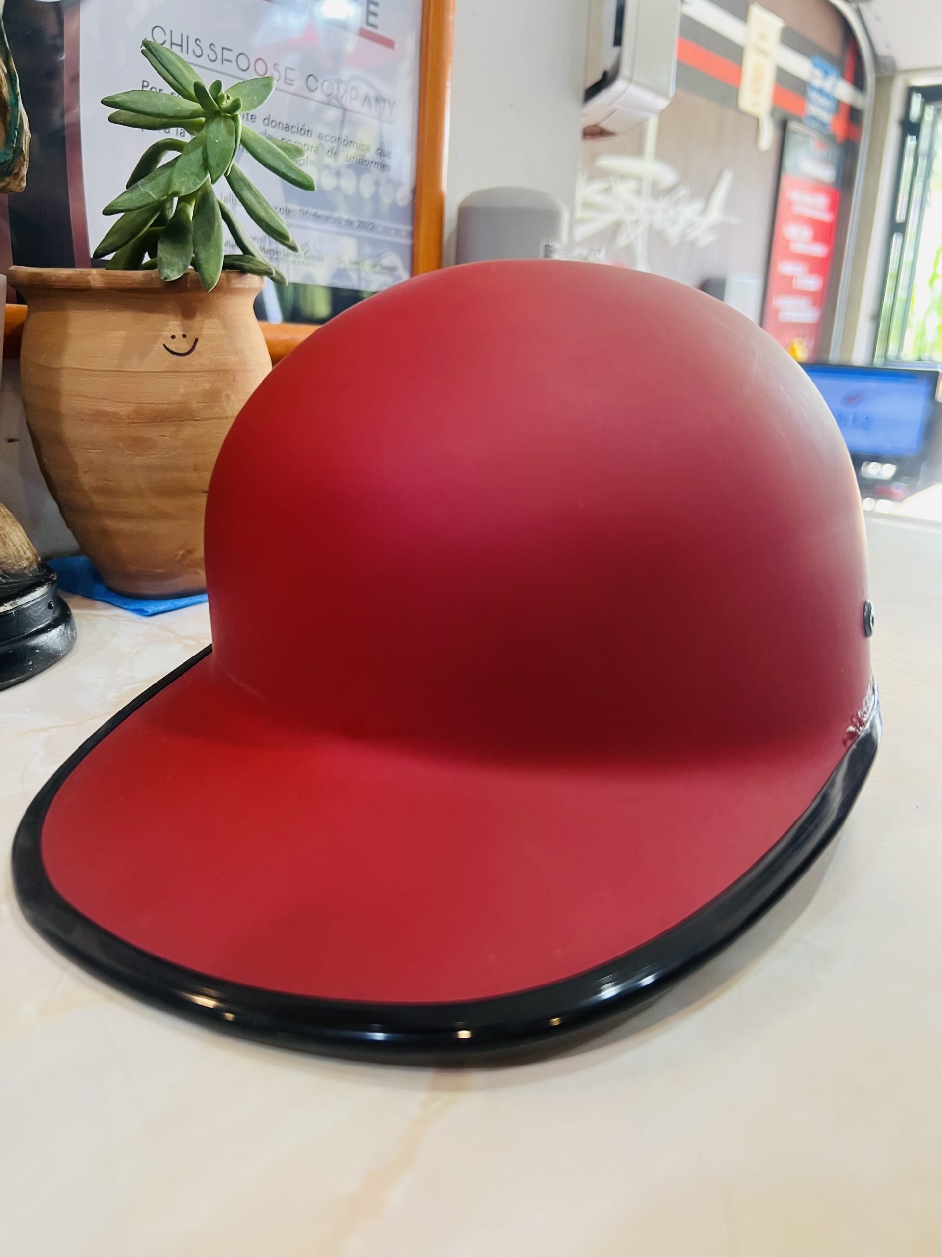 Casco tipo cachucha en color Rojo oscuro.