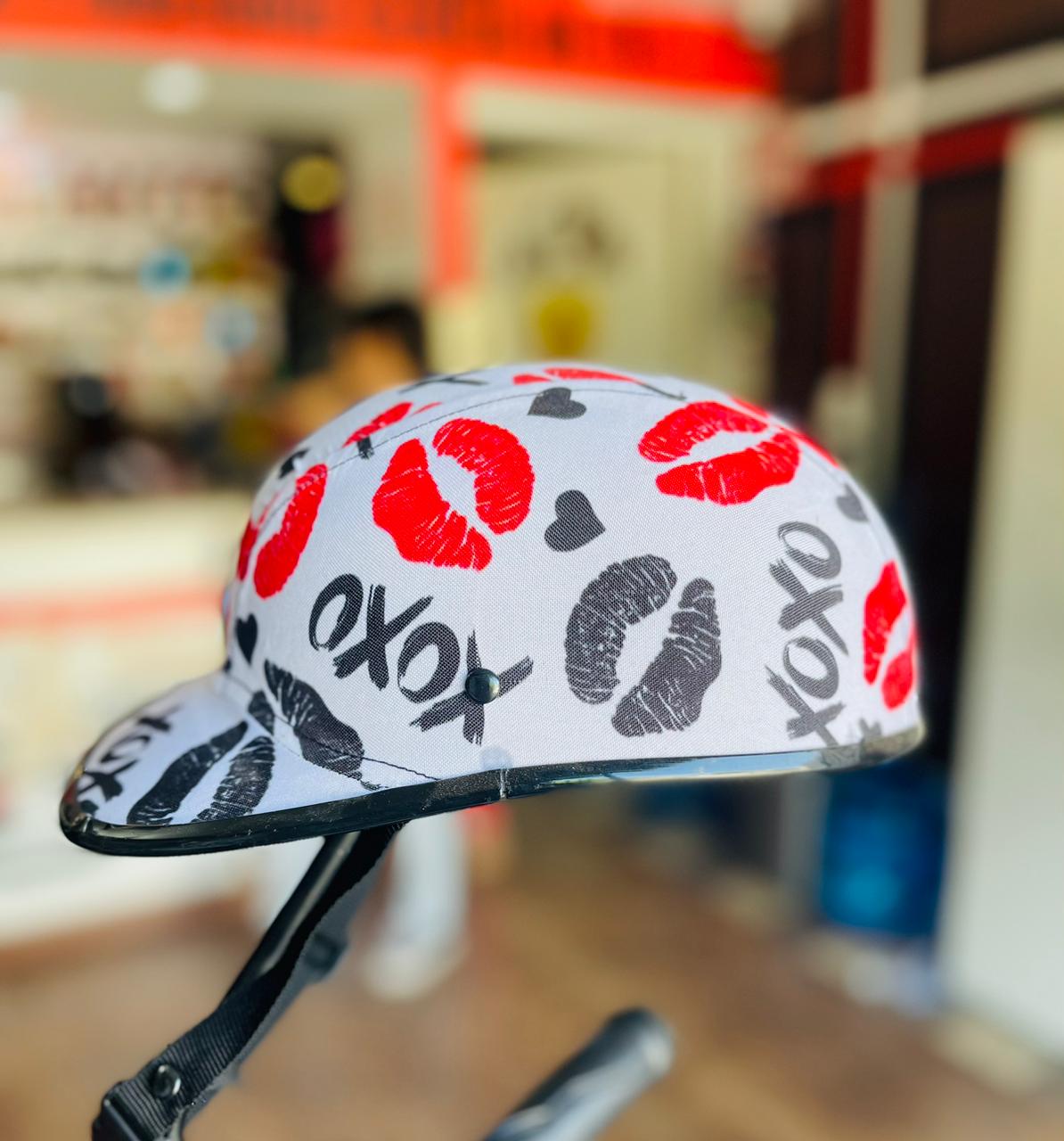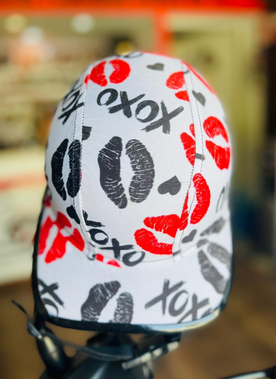 CASCO ESTILO CACHUCHA CON FORRO DE TELA CON ESTAMPADO EN ROJO Y NEGRO PARA ADOLESCENTE O ADULTO TALLA GRANDE
