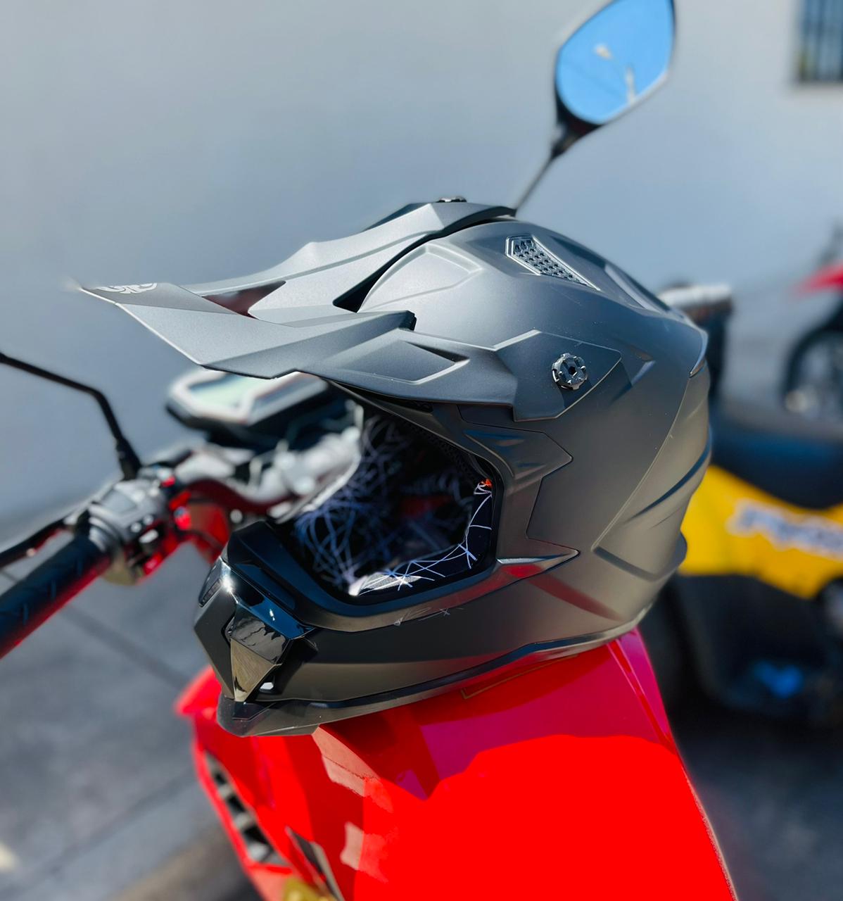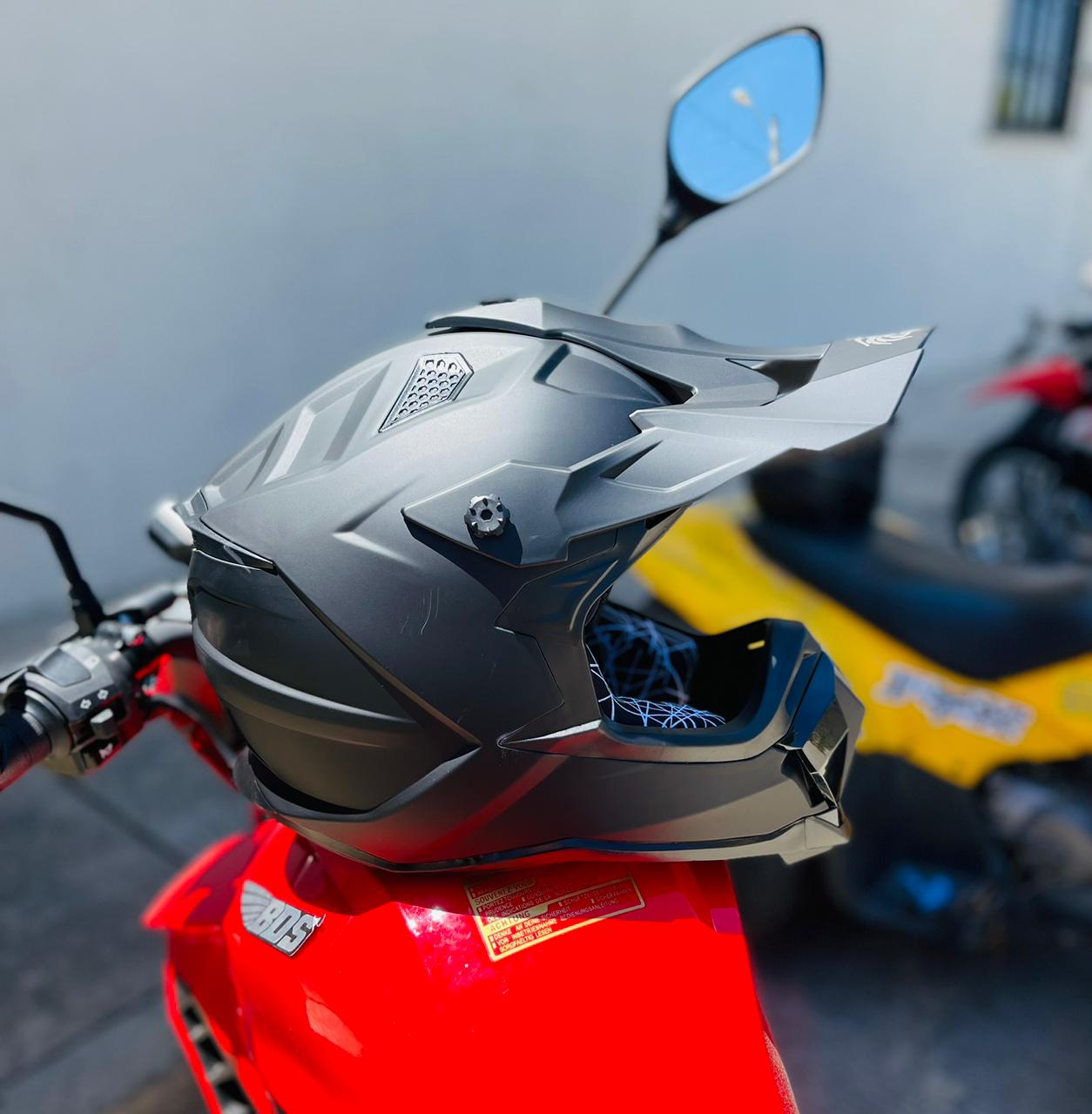 CASCO ESTILO CROSS ACOLCHADO EN COLOR NEGRO MATE, CON AREAS DE VENTILACIÓN EN TALLA L 59-60 CM DE CIRCUNFERENCIA CON CERTIFICACIÓN DOT FMVSS218.