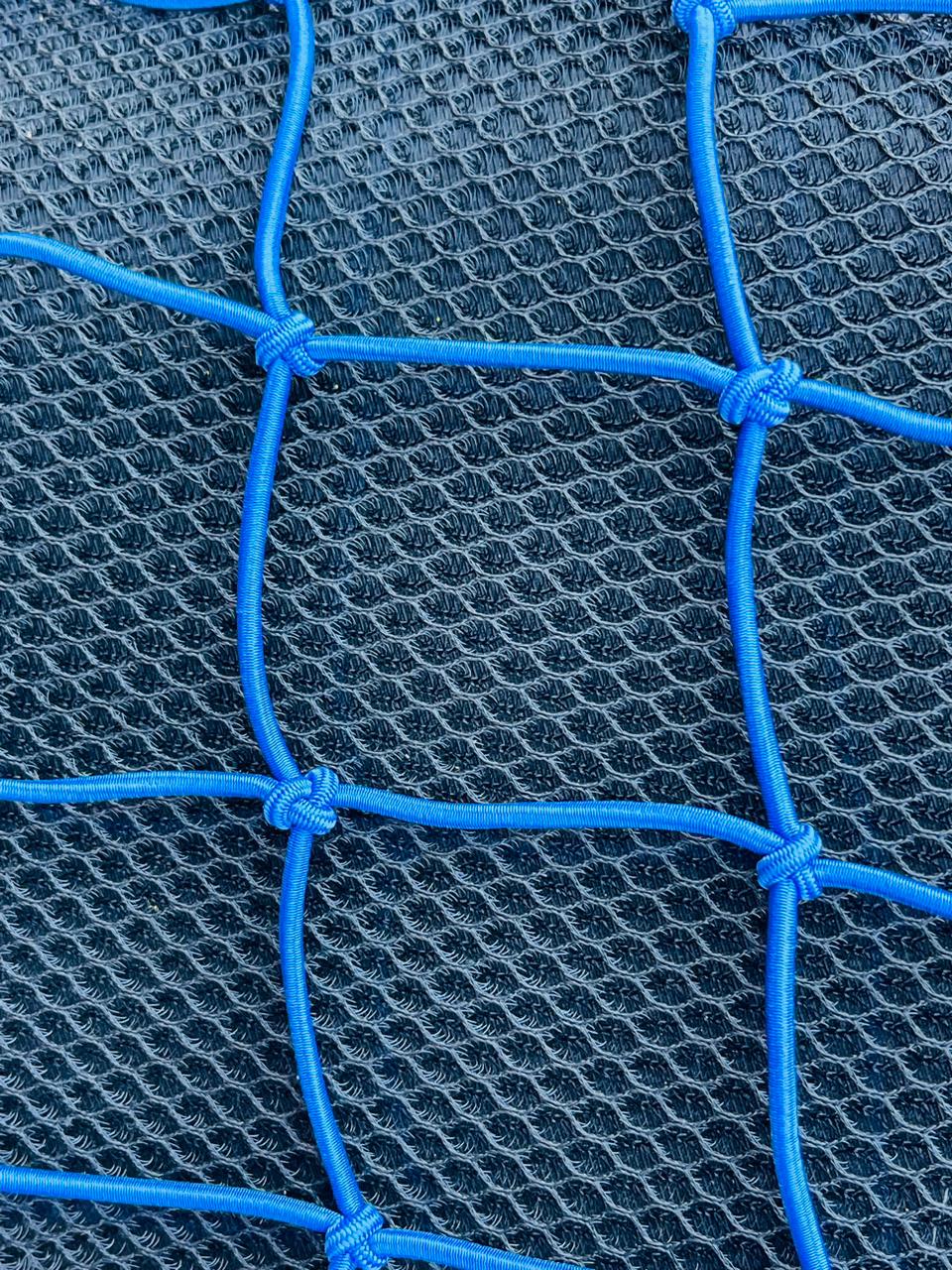RED REFORSADA, SE ESTIRA APROXIMADAMENTE UN 30% DE SU TAMAÑO ORIGINAL, CONTIEN UNA RED CON 6 GANCHILLOS METALICOS CON PUNTA PLASTICA QUE NO DAÑA LA PINTURA, MIDE 40 X 40 CM EN COLOR AZUL.